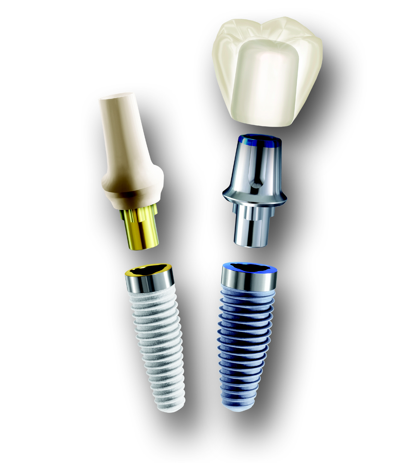 インプラントには上の図のような3つのパーツがあります。(パーツの種類は他にもいろいろありますが、ここではわかりやすいように3つのパーツで説明します) 当院ではインプラント(上の図の一番下の部分)とアバットメント(図の真ん中のパーツ)を込みで25万円(消費税別)としております。 これに上からかぶせる歯(図の一番上)の値段が別途かかります。132000円 その他手術料